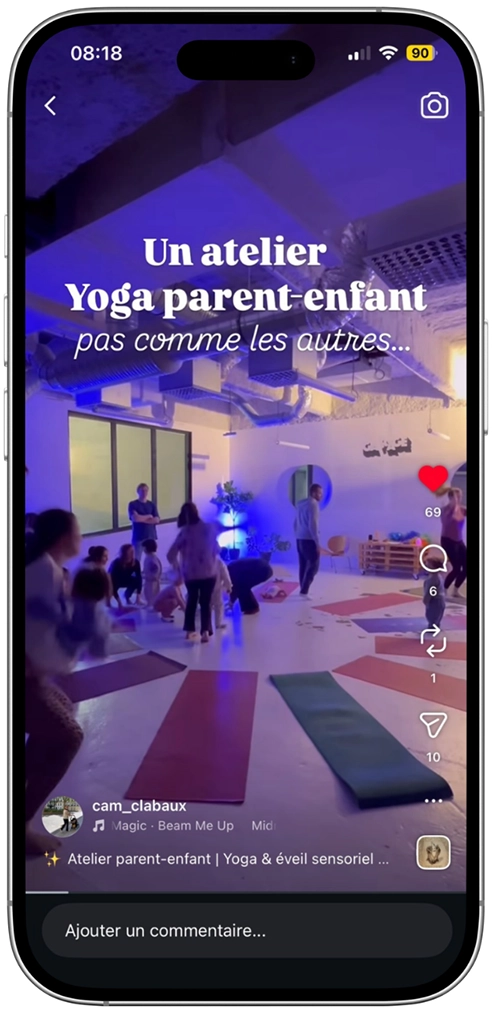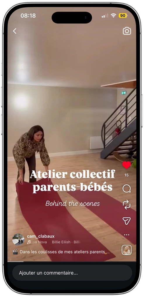 J’ai réalisé un réel immersif et inspirant dévoilant les coulisses d’un atelier massage parent-bébé, dans une ambiance cosy et rassurante.